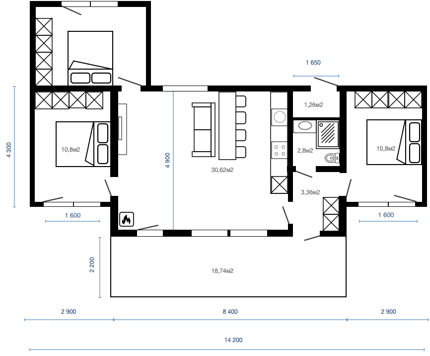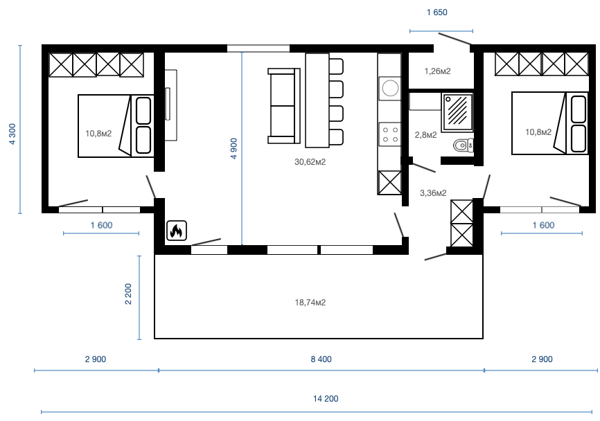 Планировка c 2 спальнями