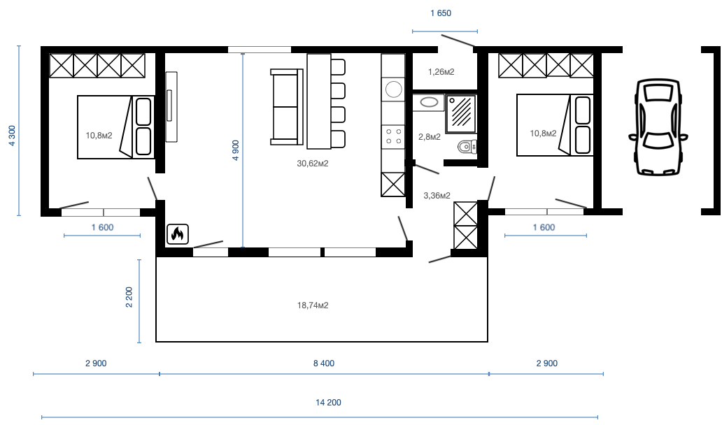 Планировка дома с навесом